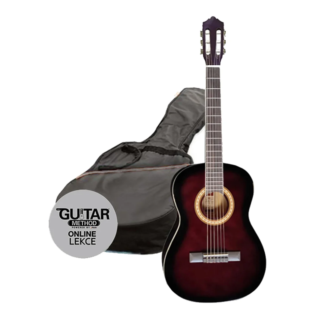 The SPCG Series is a great introductory Starter Pack. The packs include include a Gig Bag, with Online Lesson Packs. Available in six fun colour finishes including Amber (AM), Black (BK), Pink (PK), Transparent Transparent Purple (TP), Transparent Red Burst (TRB) and Transparent Blue Burst (TBB) - this Classical is a 1/4 sized slim-line bodied guitar great for smaller framed players interested in an overall lighter guitar with lighter strings to practice classical style playing and finger picking styles on. The perfect way to get started on Guitar.