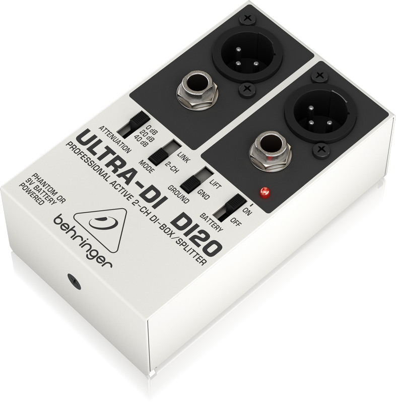 The ULTRA-DI DI20 is a one-of-a-kind DI (Direct Injection) box that can convert up to two separate, unbalanced ¼ " TRS lines into two balanced XLR outputs – or function as a signal splitter. Electric guitarists, keyboardists and bassists will love the flexibility the incredible DI20 provides both in the studio and on the stage.