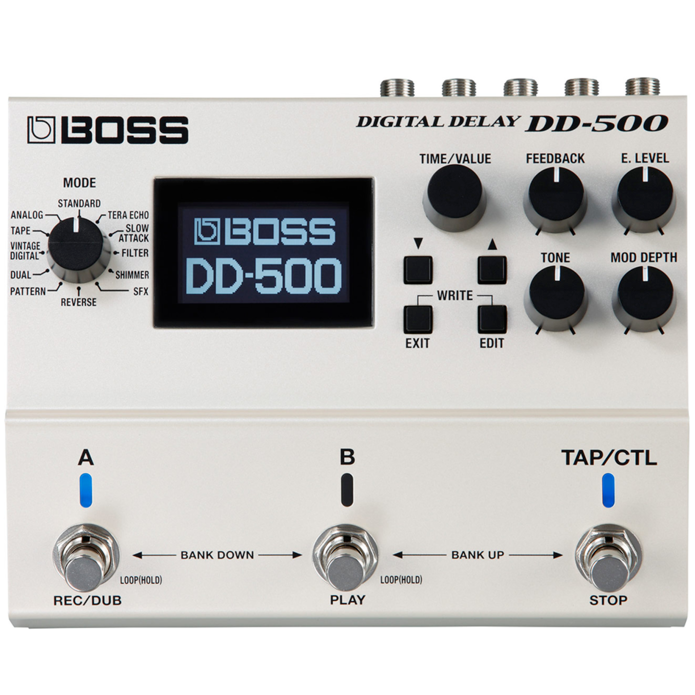 Filled with newly developed BOSS technology, the DD-500 is the most powerful and versatile stompbox delay ever created. This incredible sound-creation toolbox offers 12 distinctive delay modes with exceptional audio quality, plus deep editing controls, a graphic display, patch memories, MIDI, and much more. From basic echo to dead-on emulations of classic delays to incredibly lush spatial textures that take your breath away, the DD-500 will launch your music places you never thought possible.
