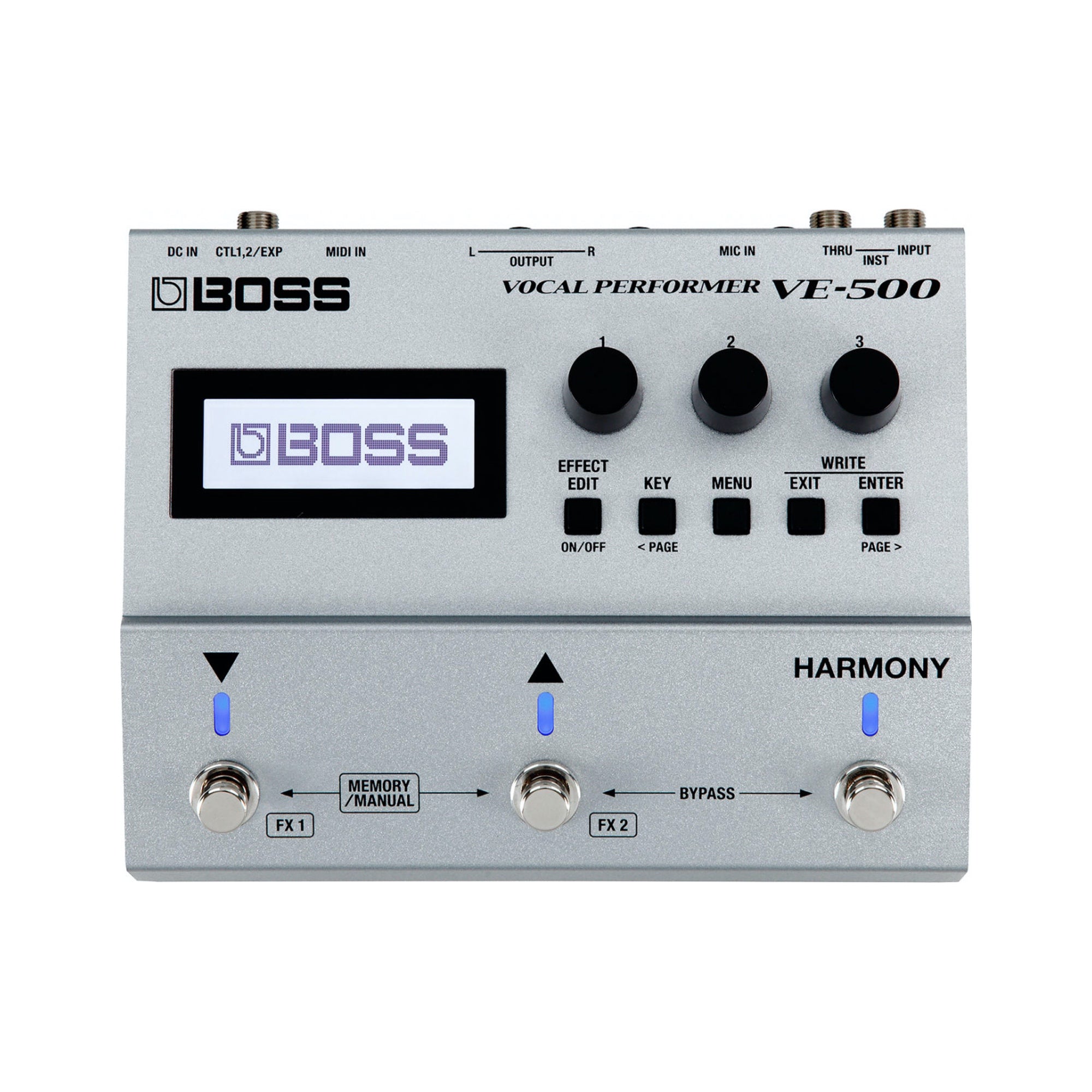 Packing professional sound quality and serious BOSS DSP muscle, the VE-500 delivers sophisticated harmony and pitch correction functions that automatically track the chords you play on your guitar. It also includes a powerful vocoder and core sound-enhancement tools, plus world-class reverb, delay, and modulation sounds and specialty effects like distortion, filtering, and many others. And with programmable memories, you can instantly recall favorite setups for any song or style. The VE-500 is the perfect addition to the pedalboard of any singing guitarist, providing top-flight vocal processing that fits right alongside your standard guitar effects.