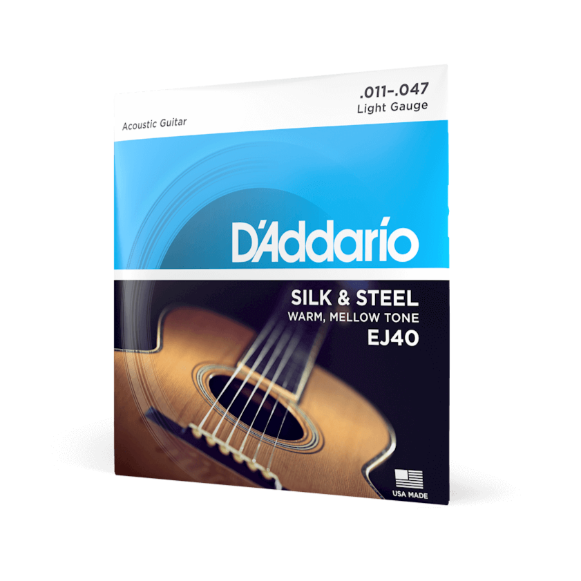 EJ40 is an extra light gauge set of strings, ideal for small body guitars and vintage instruments. Silk & Steel string sets combine light gauges with a softened tone, and are a premium choice among folk players.
