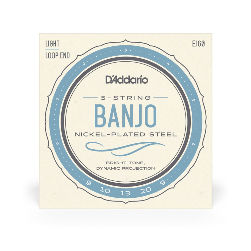 EJ60 is a light gauge string set for 5-string banjo, utilizing high carbon, tin-plated steel wire with a nickel-plated steel wound string.