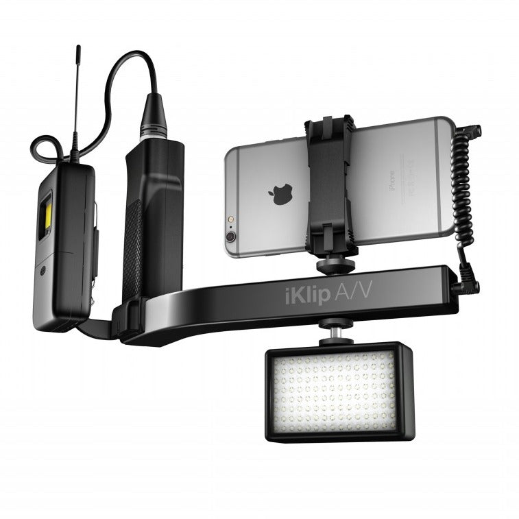 iKlip A/V is a complete mobile solution for professional audio and video recording with your smartphone. An industry first, it's a system that now gives you the ability to capture and monitor pro-quality audio on the go thanks to an integrated high-quality mic preamp and built-in wireless receiver support. With iKlip A/V you can take your best shot, capture your best take and get professional broadcast-ready results with just your smartphone and your favorite microphone. Want to increase your production quality while decreasing your budget?