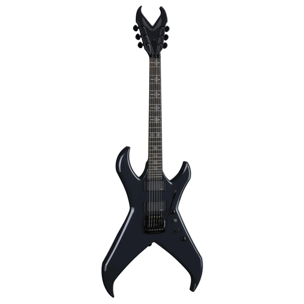 The Dean USA Kerry King Overlord Signature Guitar is the pinnacle of craftsmanship, completely handmade in the Dean USA Custom Shop in Tampa, FL. Our second unique, all-new Dean design comes with a remarkable level of precision and focus. The Dean USA Custom Shop team paired a mahogany body with a North American maple top, painted in a stunning dark gray high gloss finish. A 3-piece maple neck with a Kerry King Spec. 24.75 scale length, and a C neck shape. 24 jumbo fret, Ebony Fingerboard with detailed hand-crafted pearl custom inlays accompanied with ultra-vibrant LED fret markers along the side. The electronics feature the amazing Sustainiac neck pickup and an EMG 81 with PA2 Preamp Booster pickup at the bridge. Completing this iconic guitar is Kerry’s own signature Kahler KFK Tremolo system.