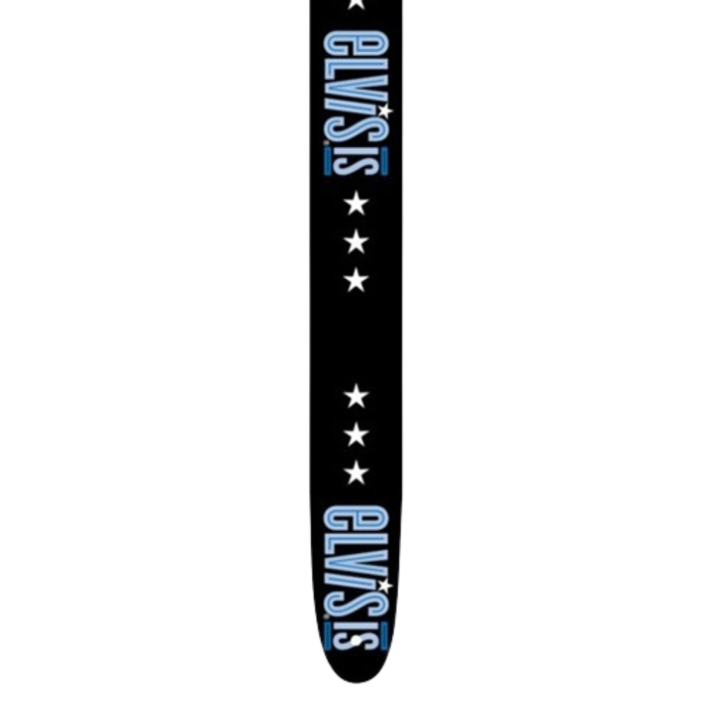 Adjustable length 44.5" to 53" This is a 2.5" wide licensed Elvis guitar strap with "Elvis Is" design. This 100% genuine leather strap is made with High Resolution Imaging which makes the picture crystal clear. This strap is adjustable from 44.5" to 53" in length. (PS839)