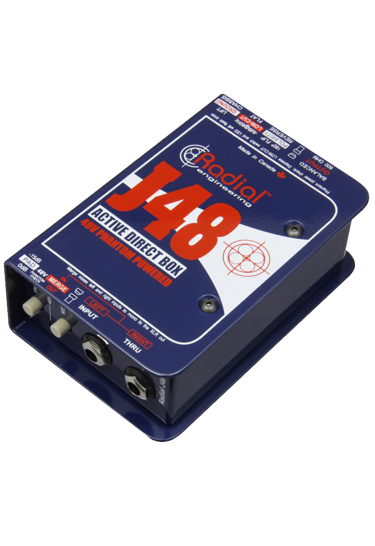 The J48 is a high performance active direct box for live concert touring and professional recording studio applications, with the ability to handle extreme transients without distortion while delivering the natural sound of your instrument.