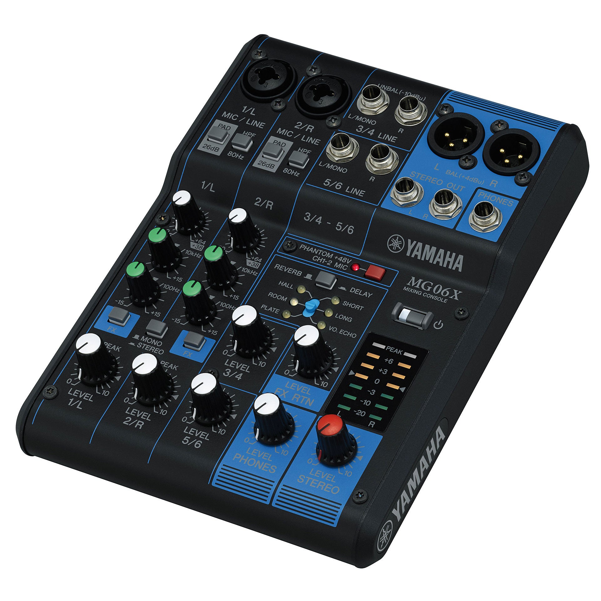 Feature-rich and delivering outstanding sound quality, the Yamaha MG06X analog mixer is well-suited for ultra-compact mixing rigs. The MG06X's quality op-amp ensures that your mix sounds transparent and articulate. The MG06X's crystal clear D-PRE preamps will squeeze every drop of tone from your mics, with natural-sounding bass and smooth highs. Featuring switchable phantom power, a pad switch, EQ, and LED metering, the tiny MG06X can take on just about any task you throw at it. Utilizing many state-of-the-art features from Yamaha's high-end consoles, the MG06X is ready to work for you!